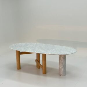 Wabi-sabi style wood and marble dining table designs