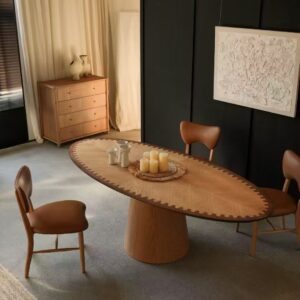 Wabi-sabi style oval wood dining table