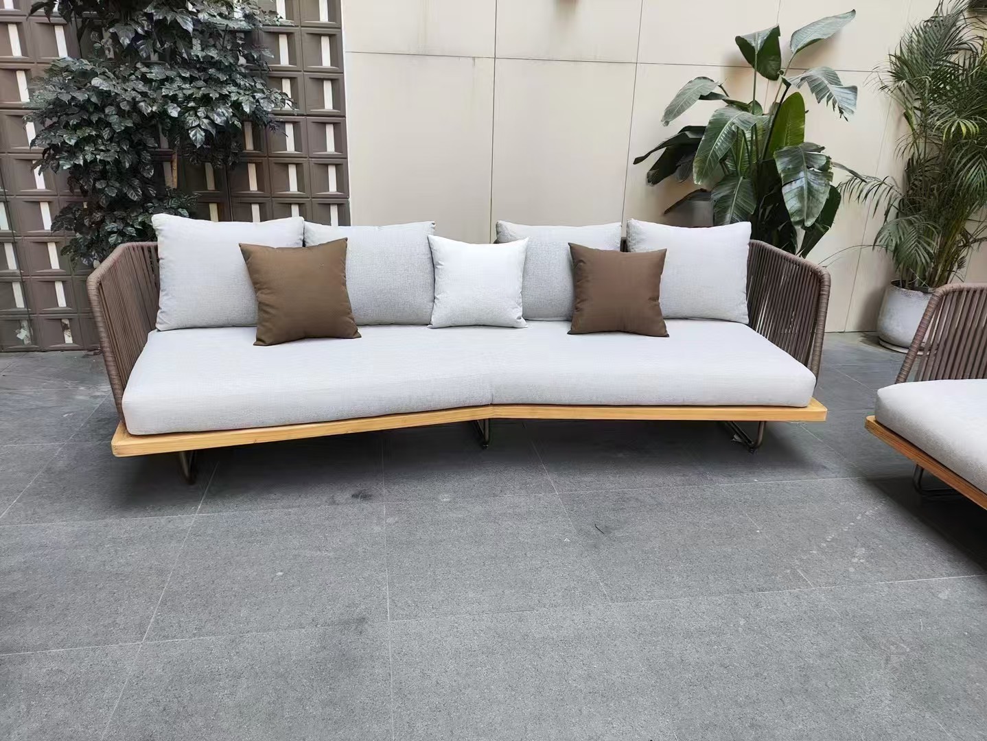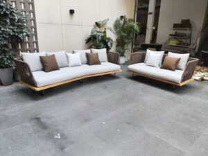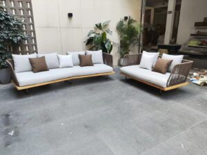 It is made of red rope and aluminum alloy. It is a modular 2 seats sofa set. Welcome to custom-made.