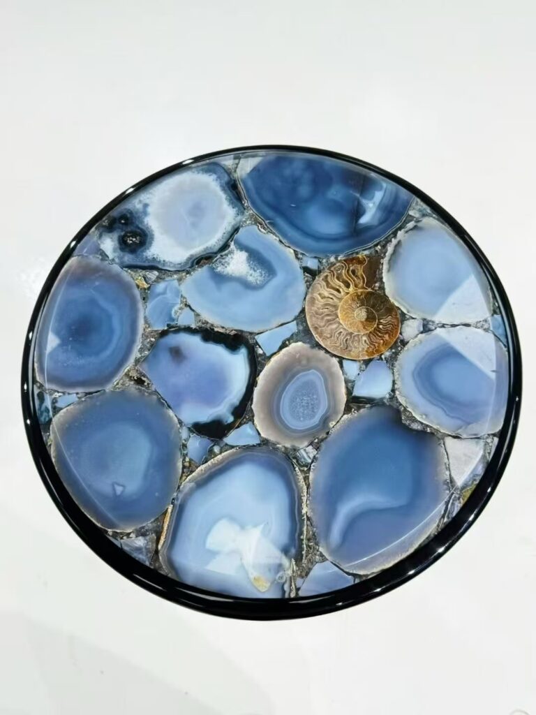 High-class round blue agate stone side table