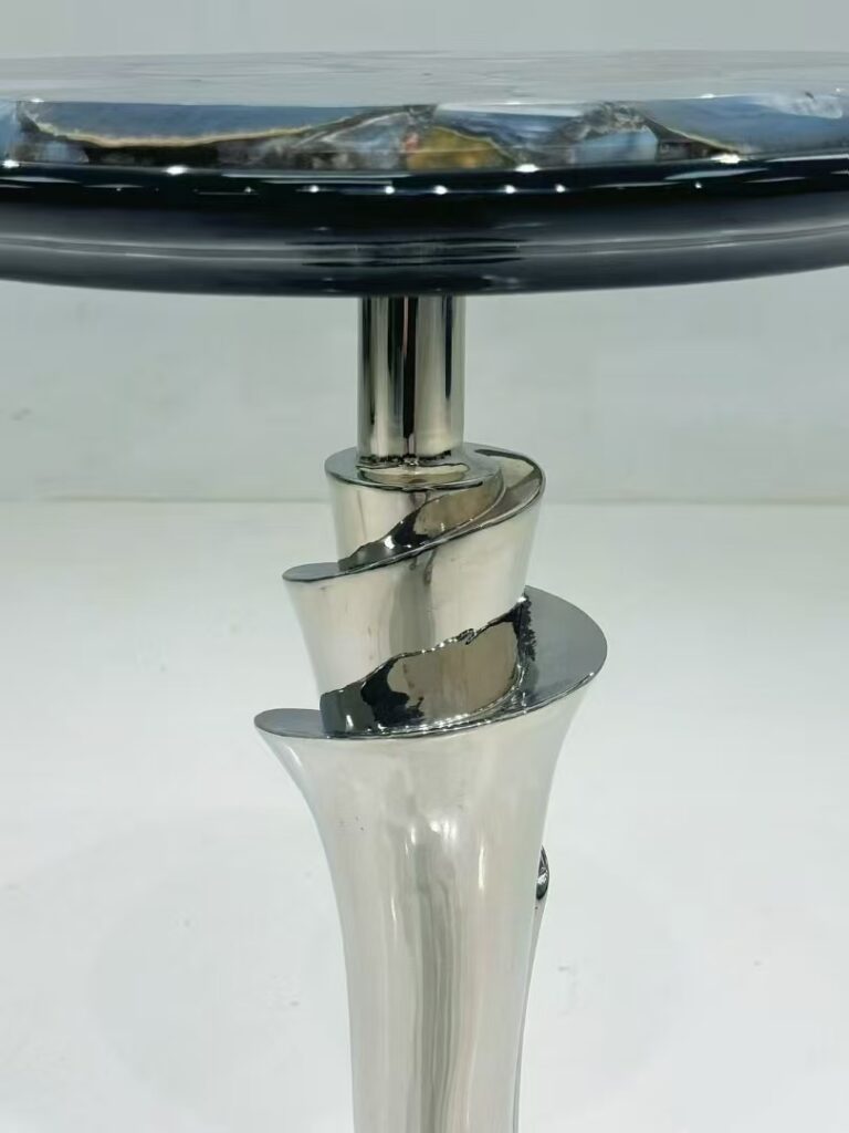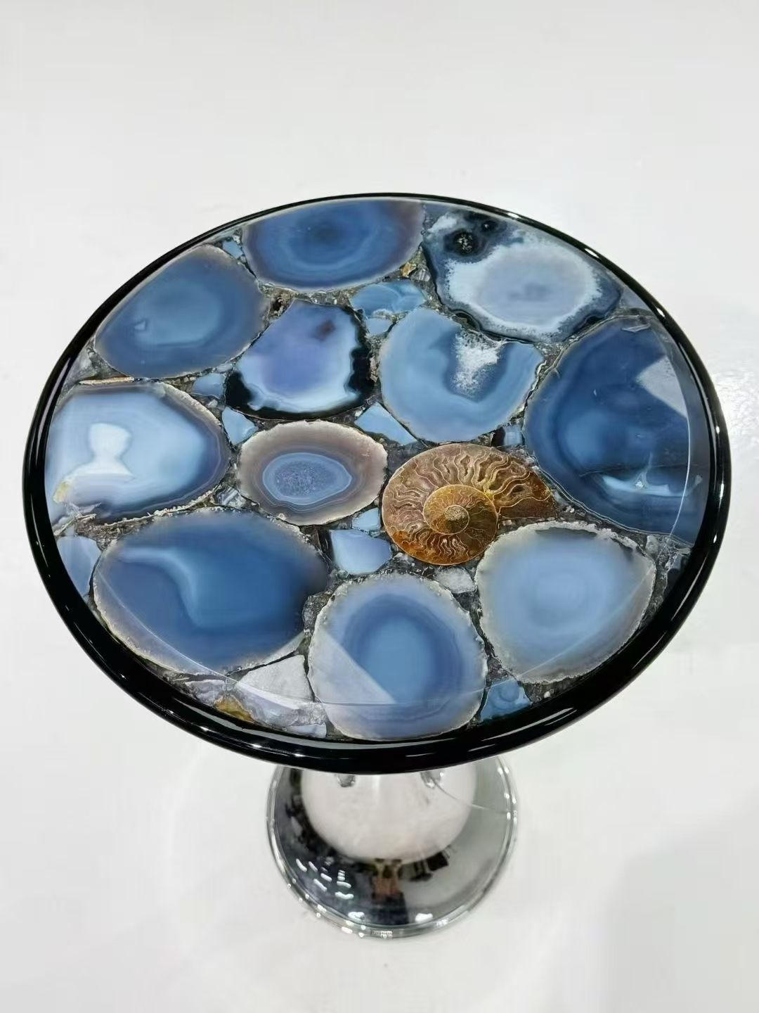 High-class round blue agate stone side table