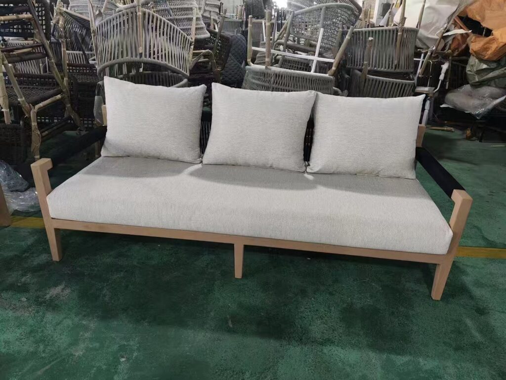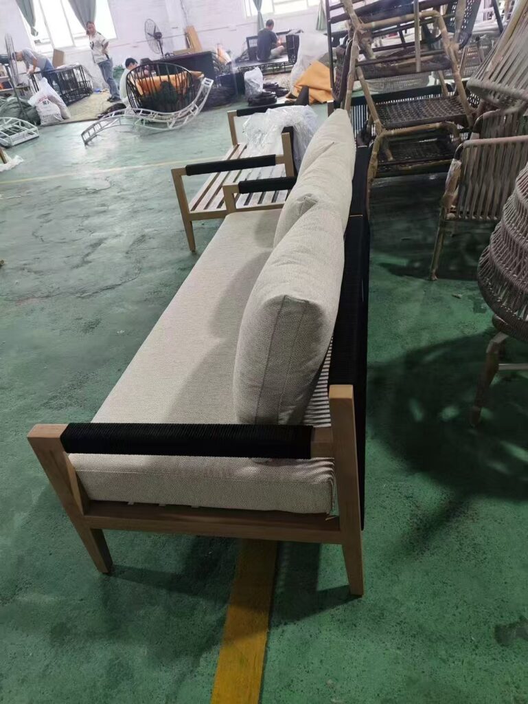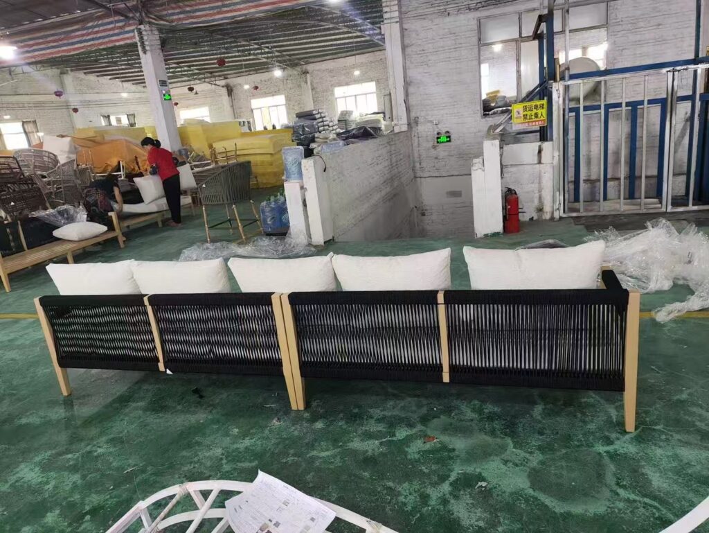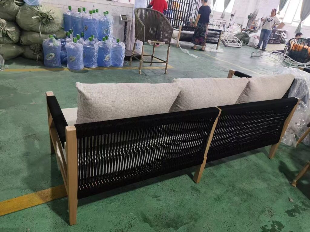 It is made of black rope and aluminum alloy. It is a 3 seats sofa set. Welcome to custom-made.