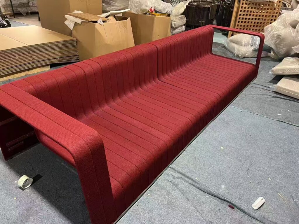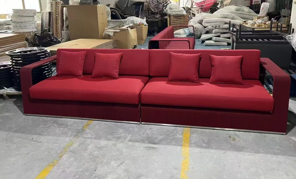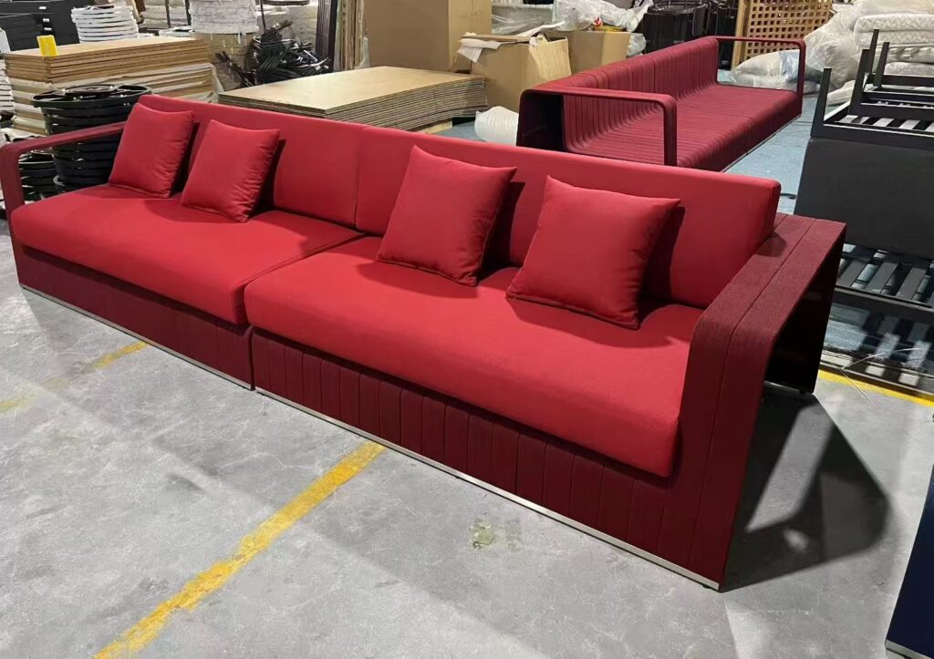 It is made of red rope and aluminum alloy. It is a modular 4 seats sofa set. Welcome to custom-made.