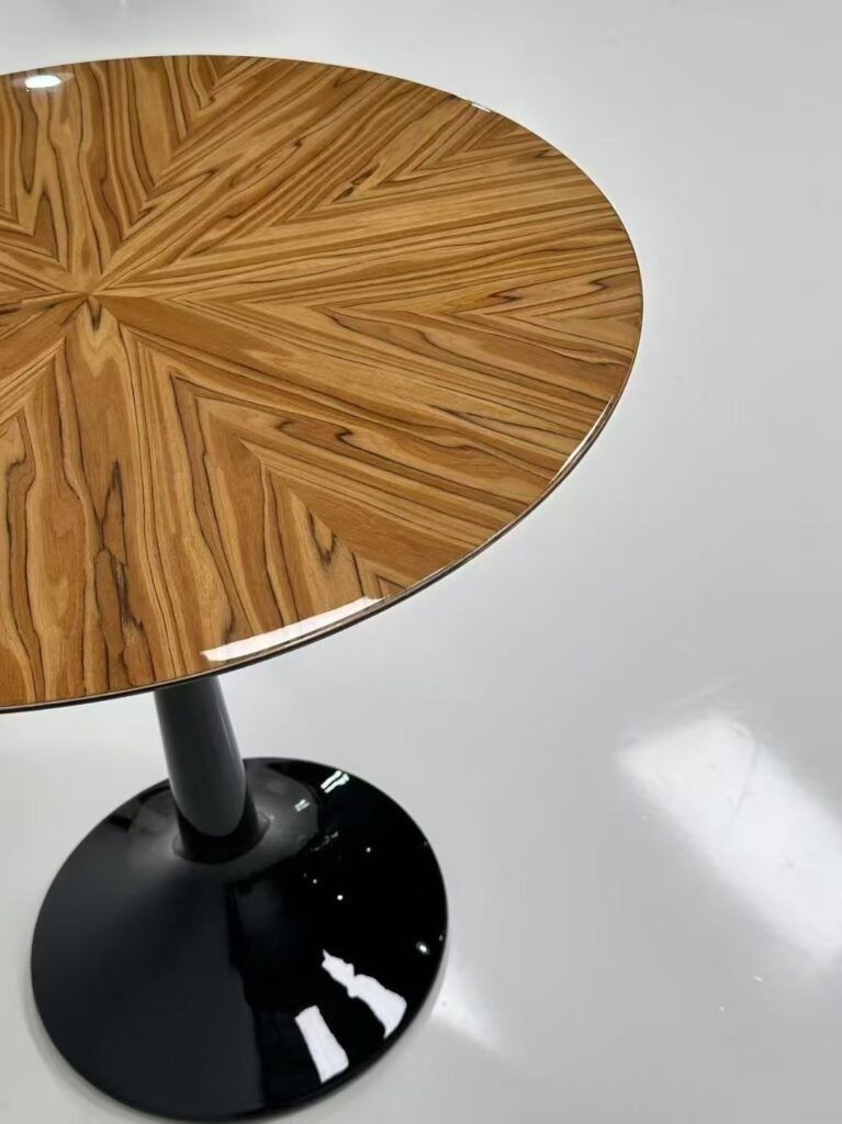 Round dining table with stainless steel base