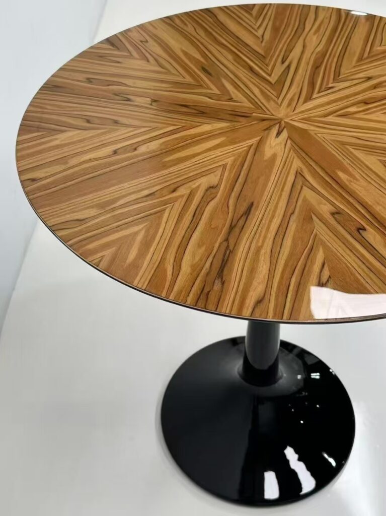 Material: Laminated wood inlay for tabletop, base is solid wood