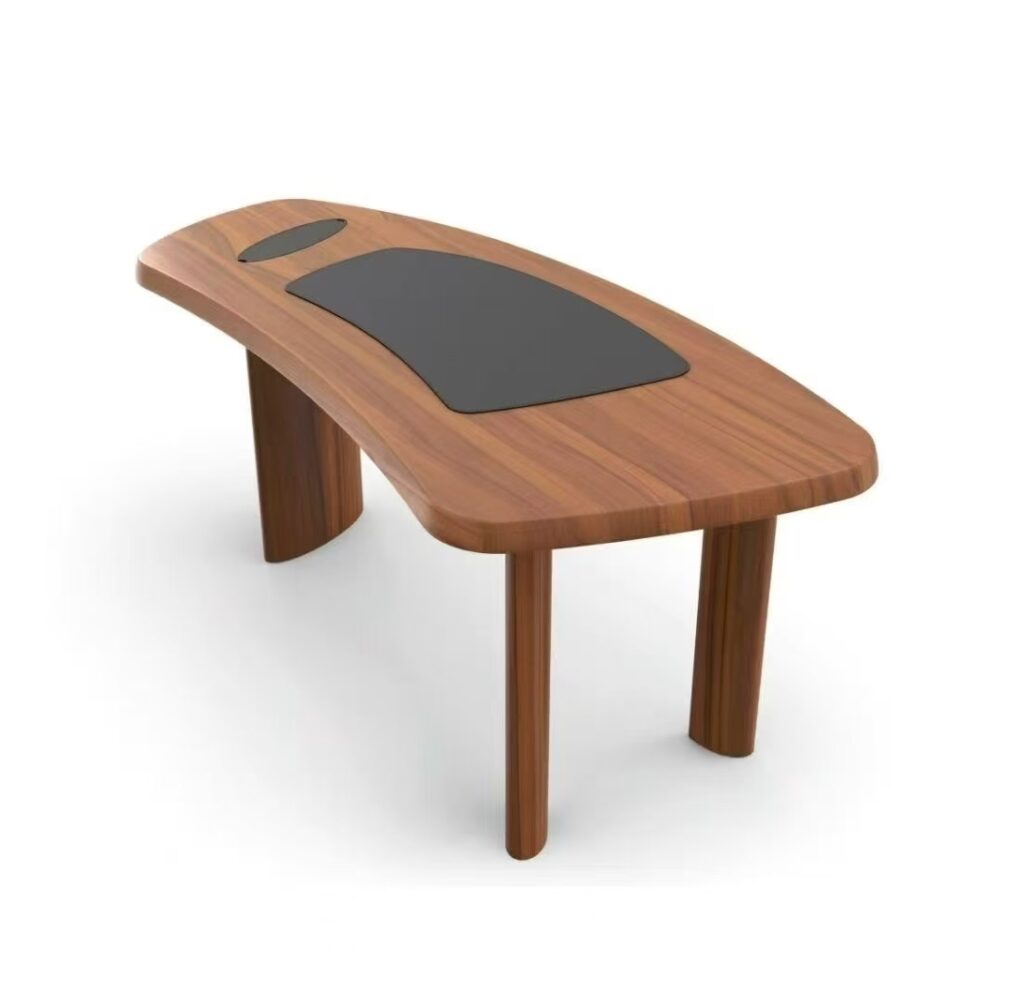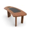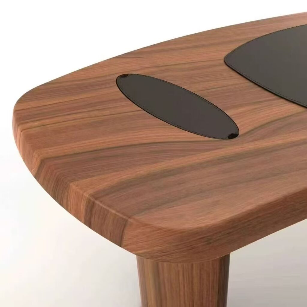 Material: Laminated wood inlay for tabletop, base is solid wood