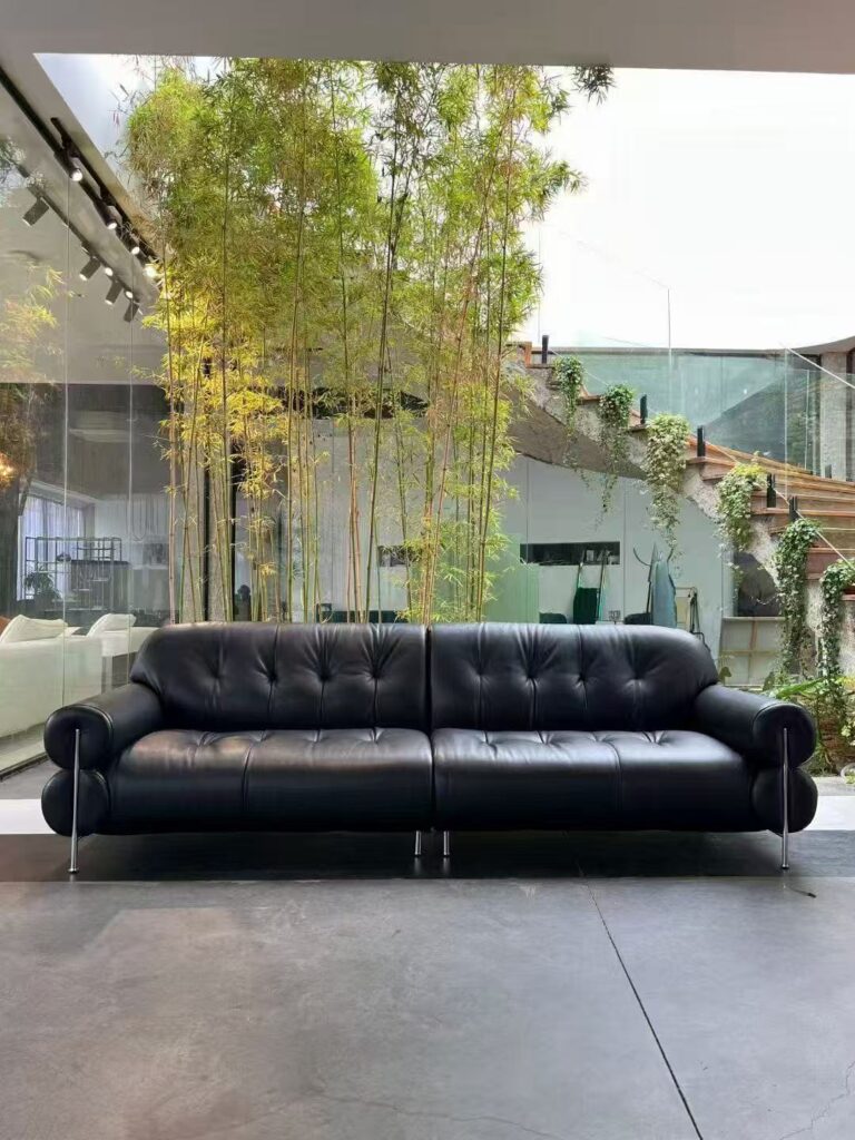 Italian simple style straight black leather sofa