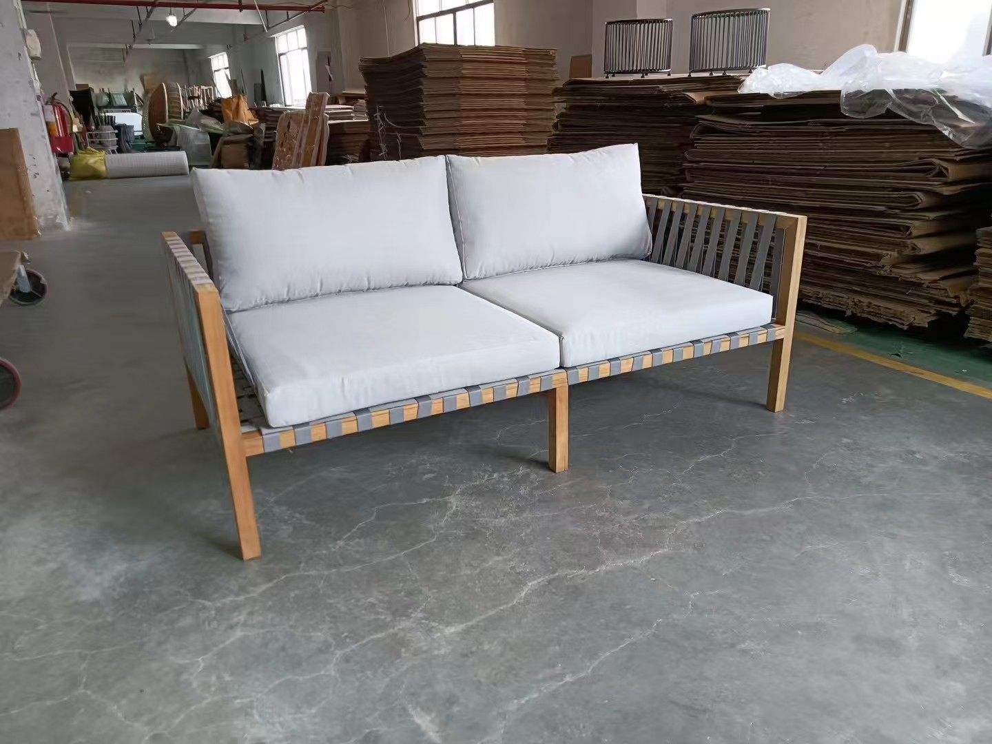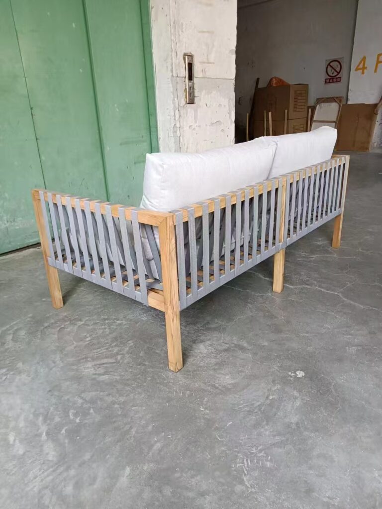 It is made of red rope and teak wood. It is a modular 2 seats sofa set. Welcome to custom-made.